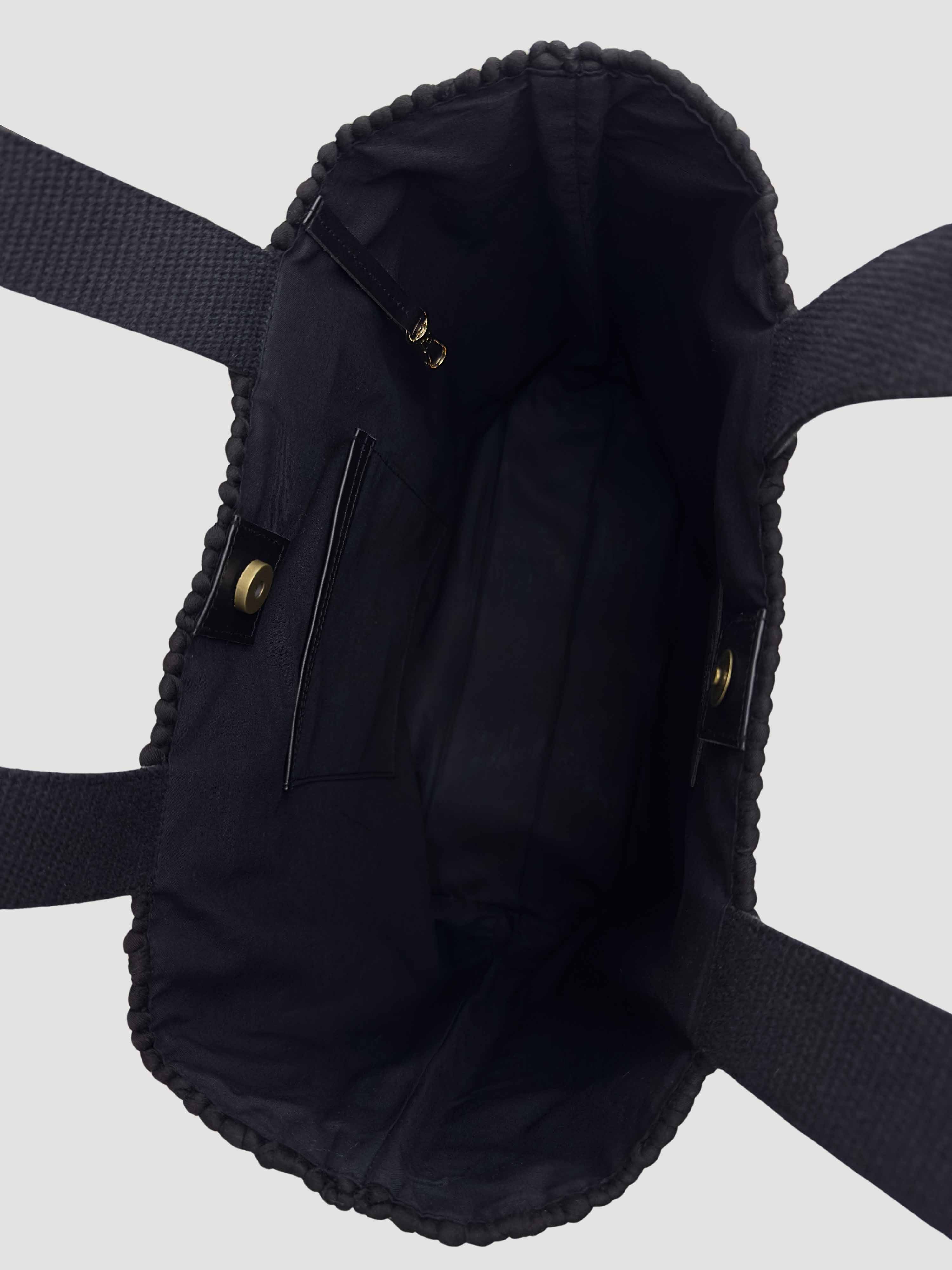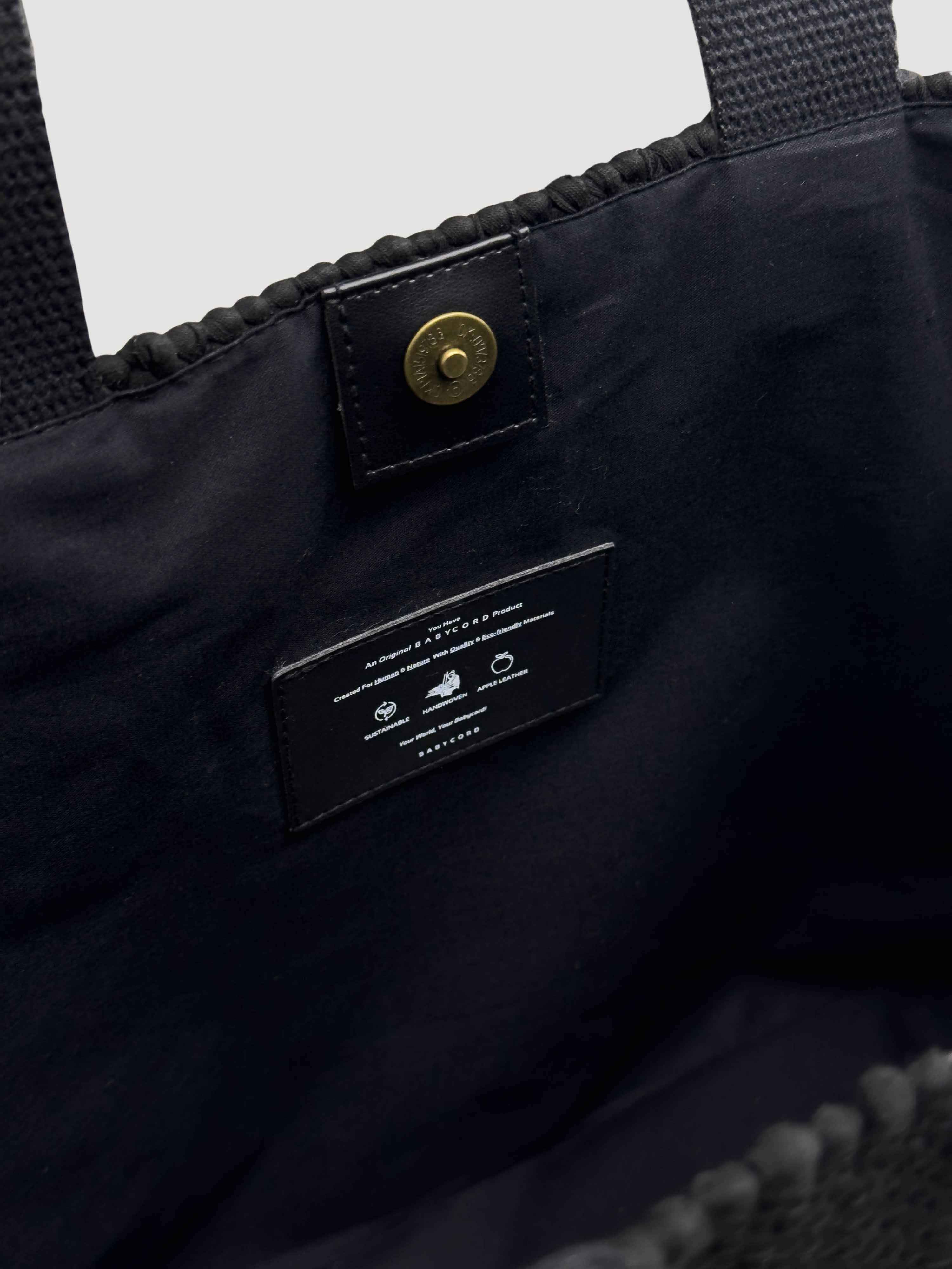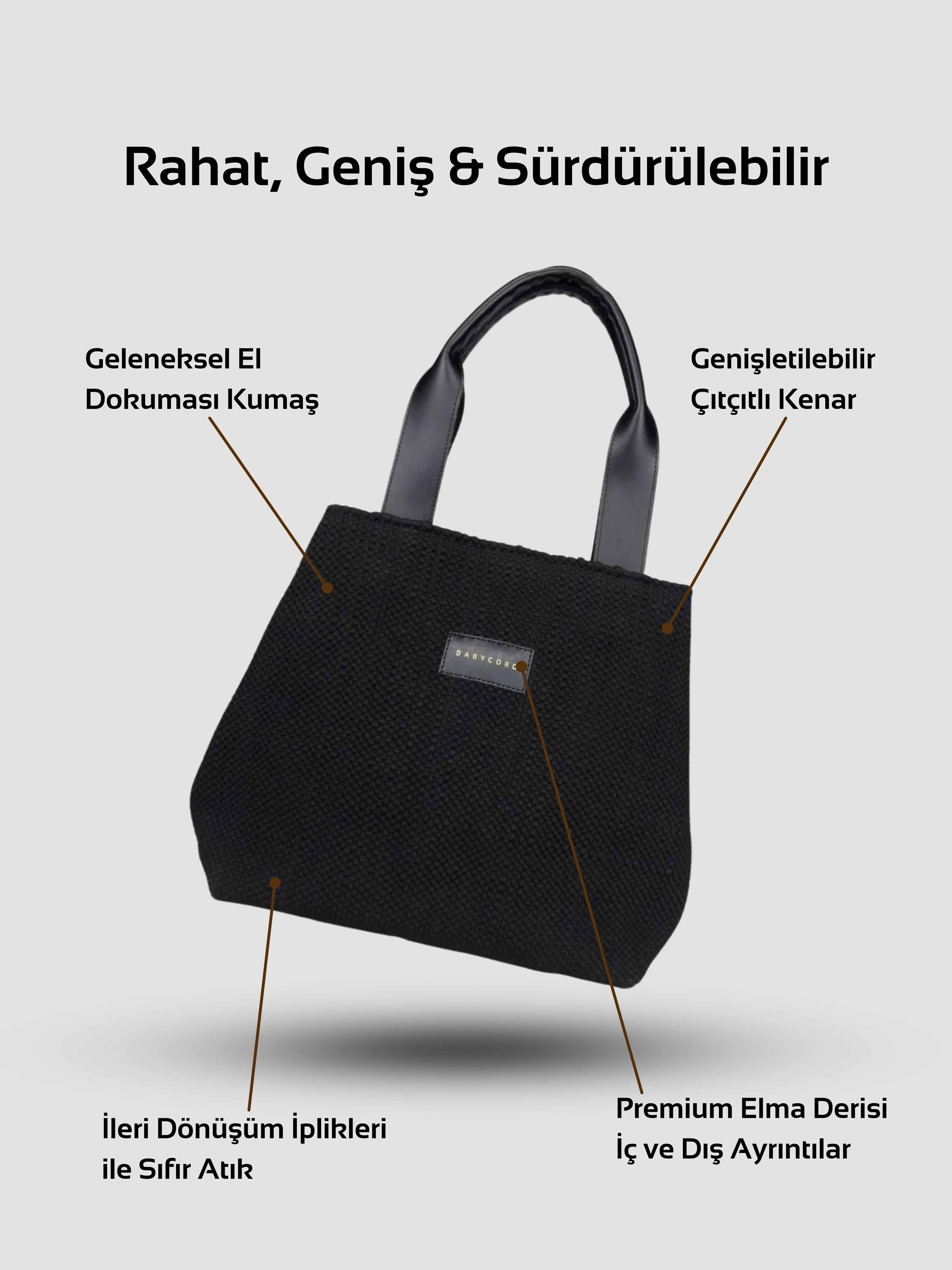 Ürün kumaşı, geri dönüşüm iplikleri kullanılarak geleneksel el dokuması yöntemi ile dokunmuştur. Türkiye’de üretilmiştir.