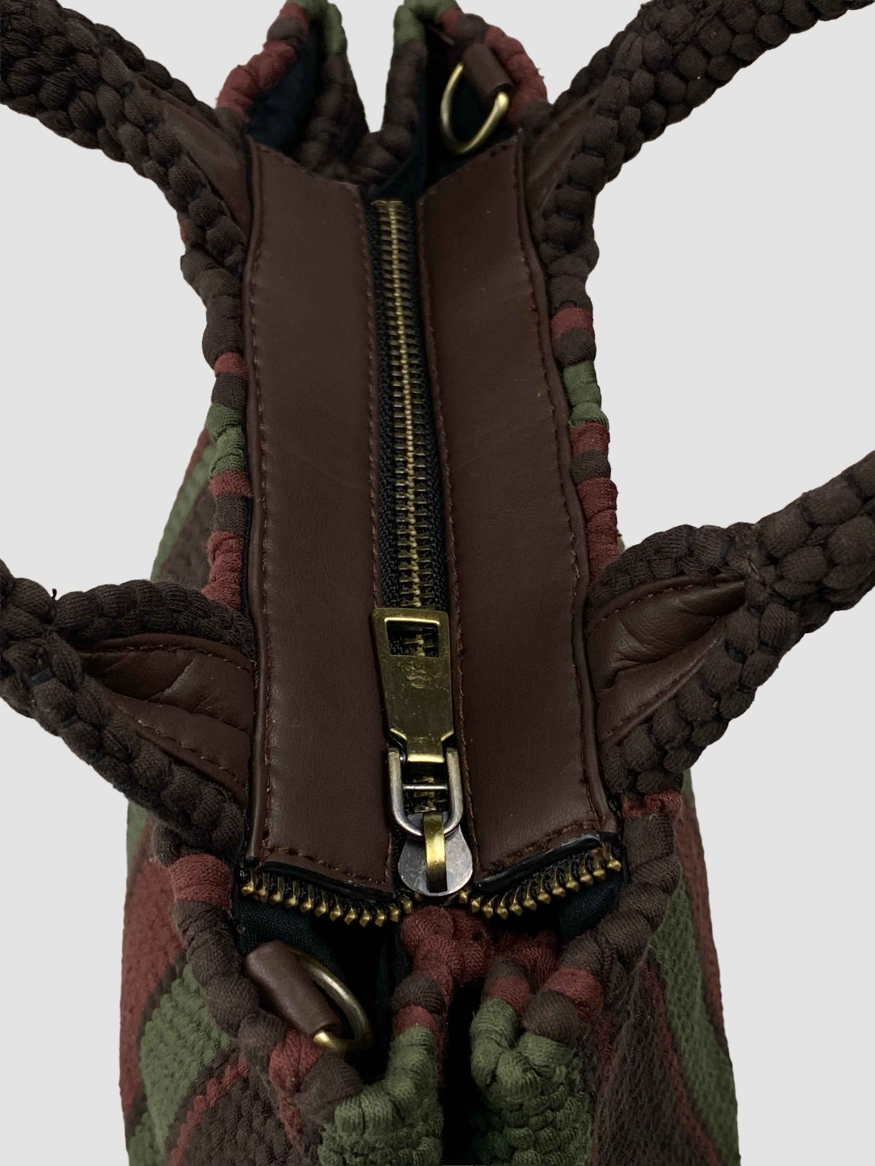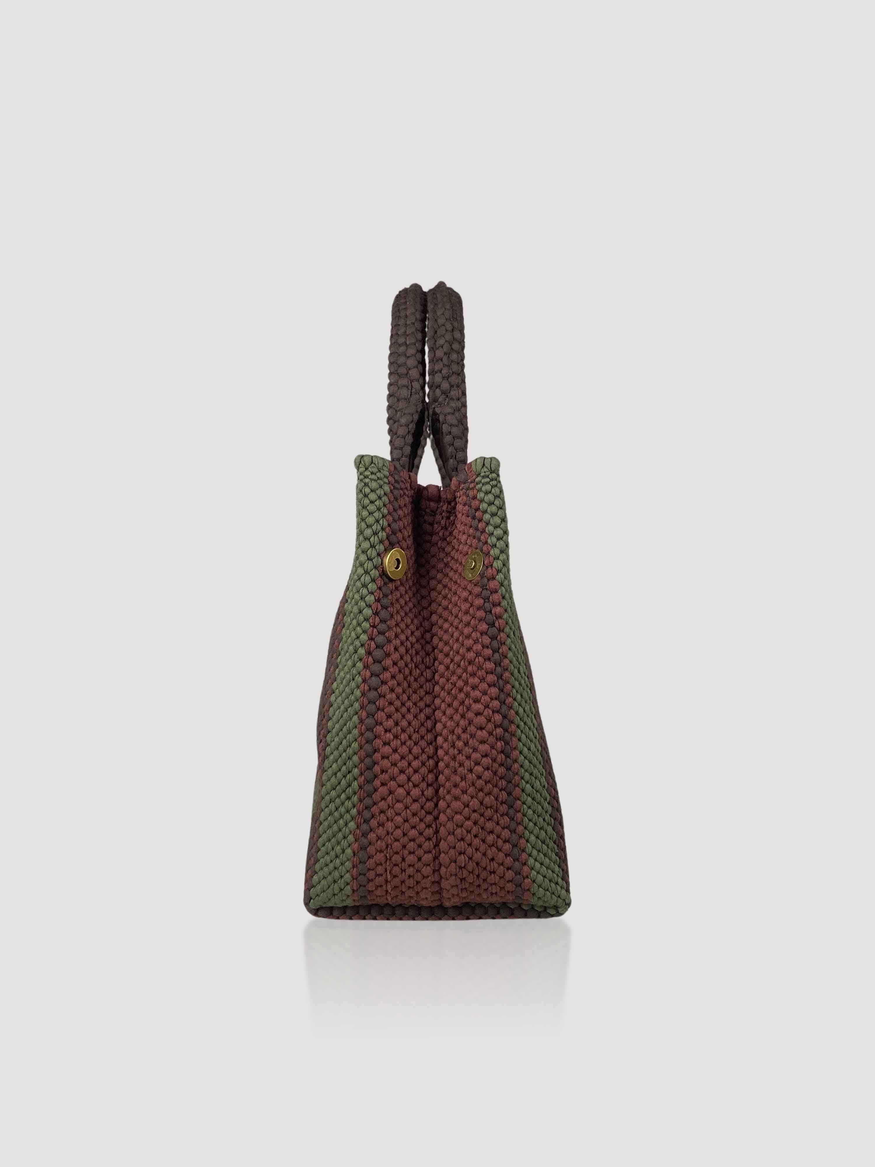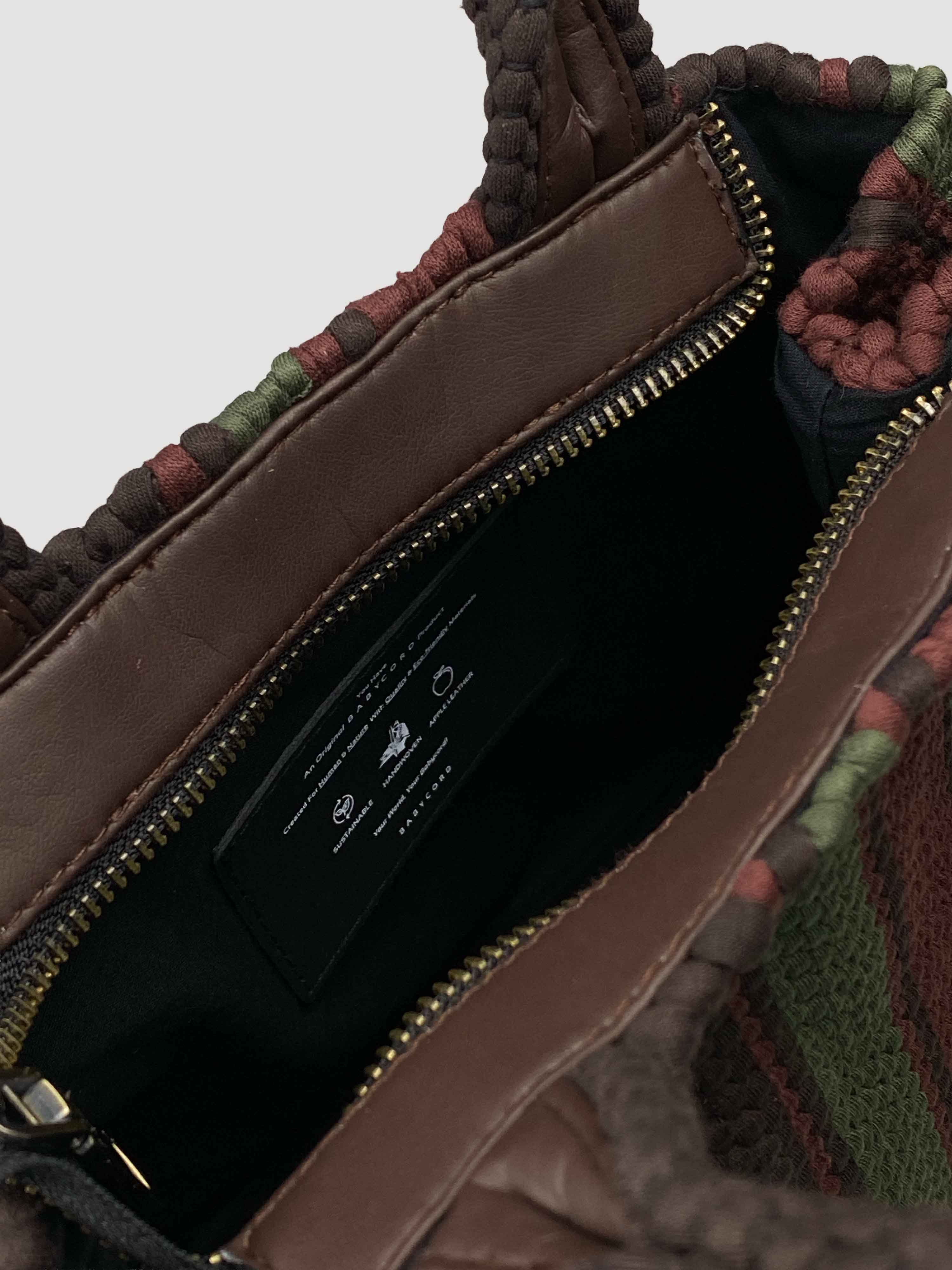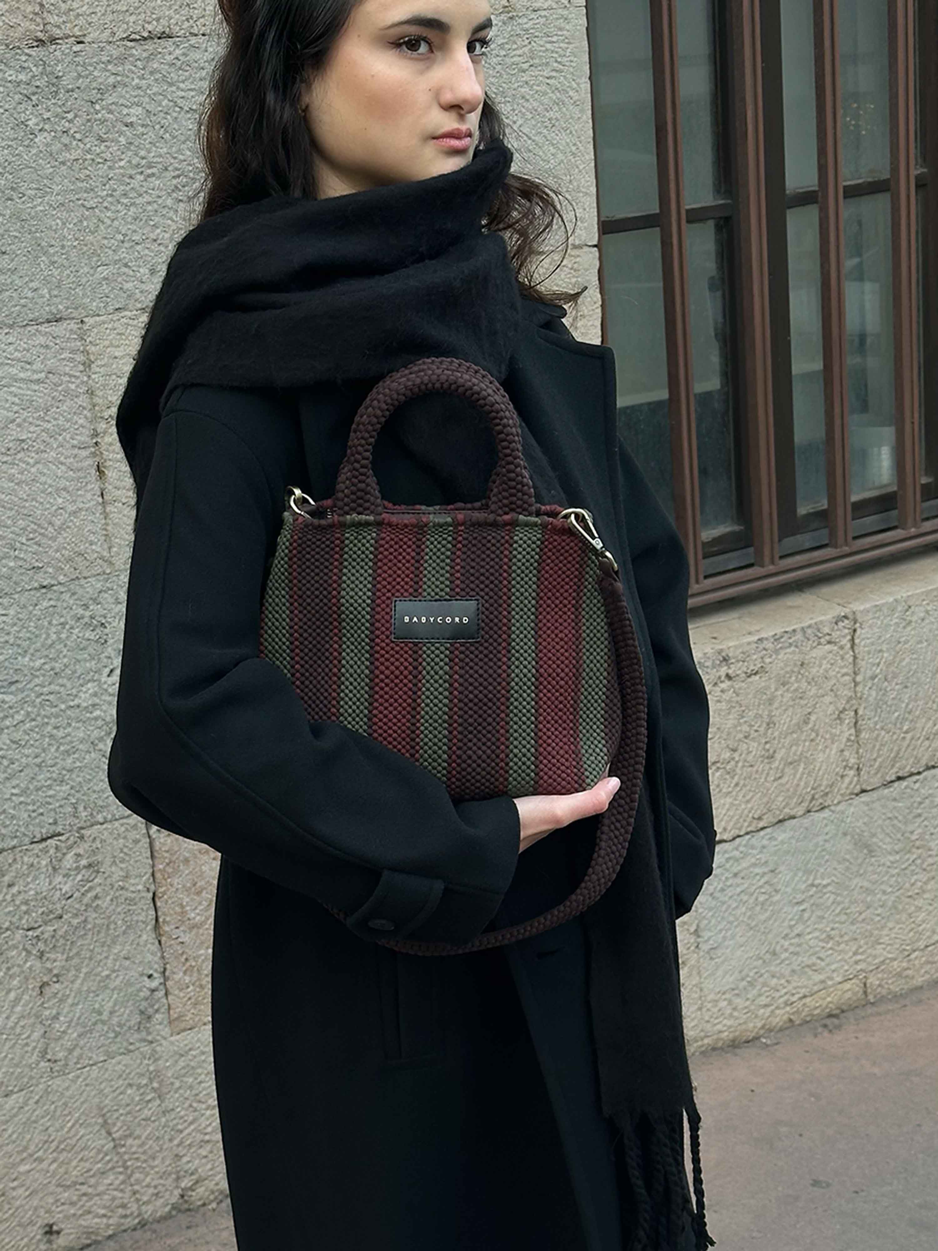 Ürün kumaşı, geri dönüşüm iplikleri kullanılarak geleneksel el dokuması yöntemi ile dokunmuştur. Türkiye’de üretilmiştir.
