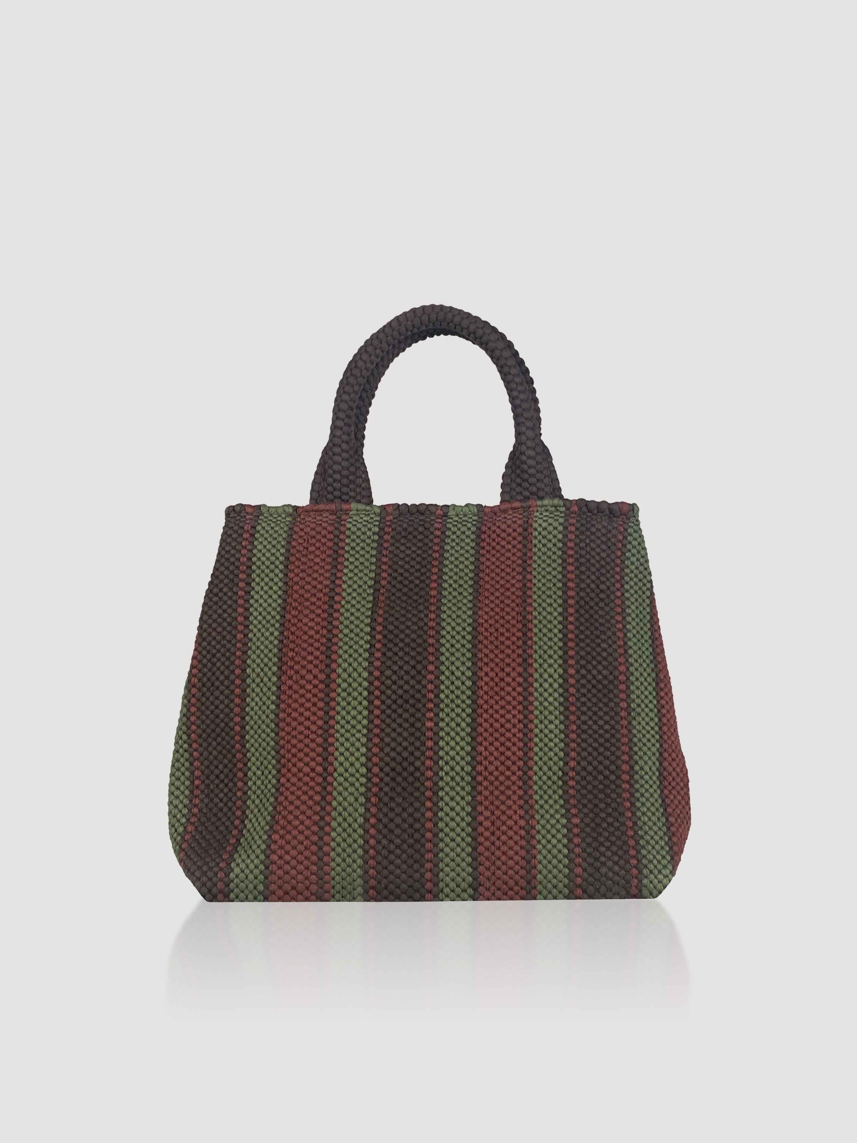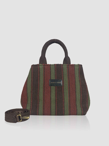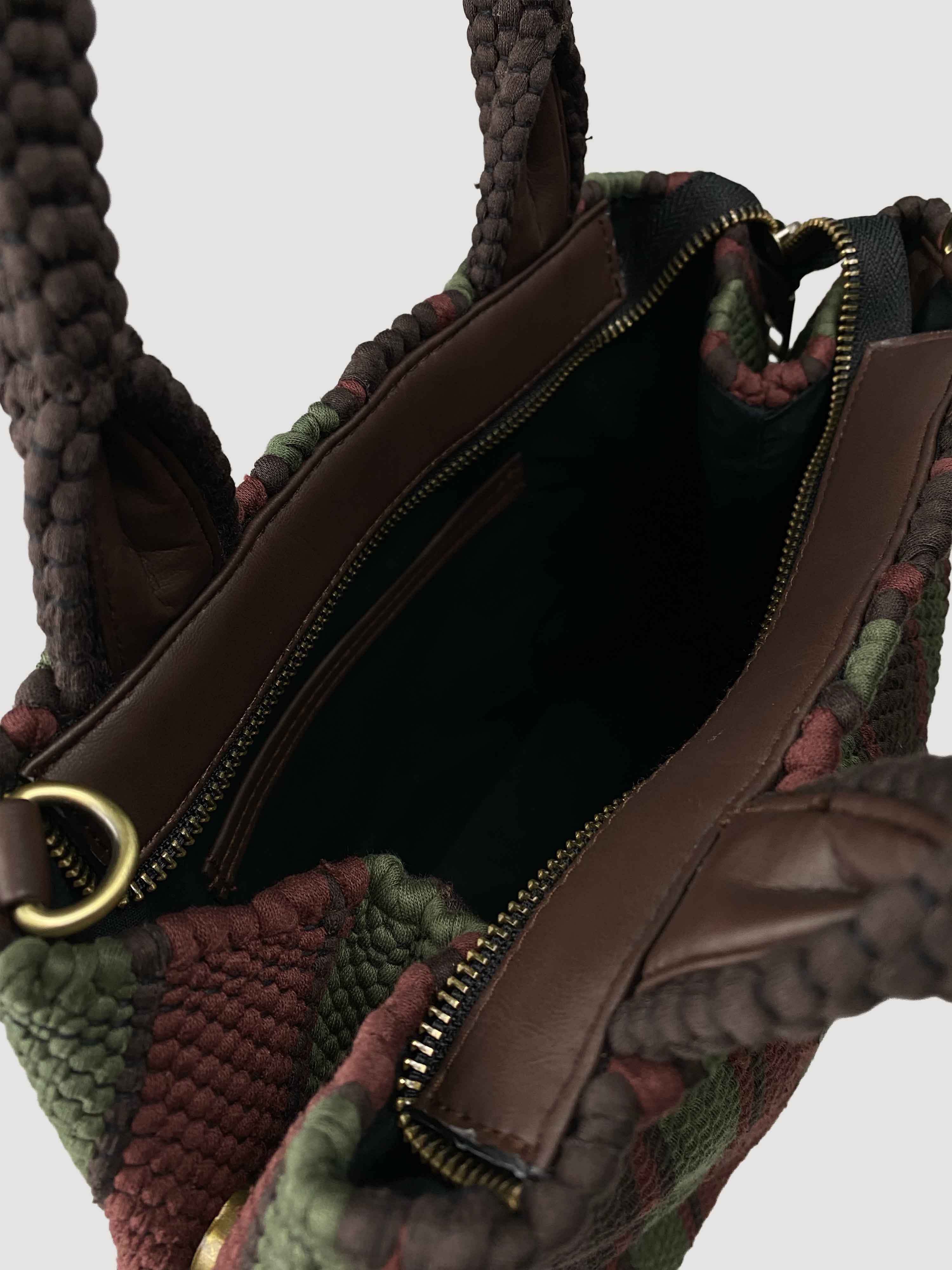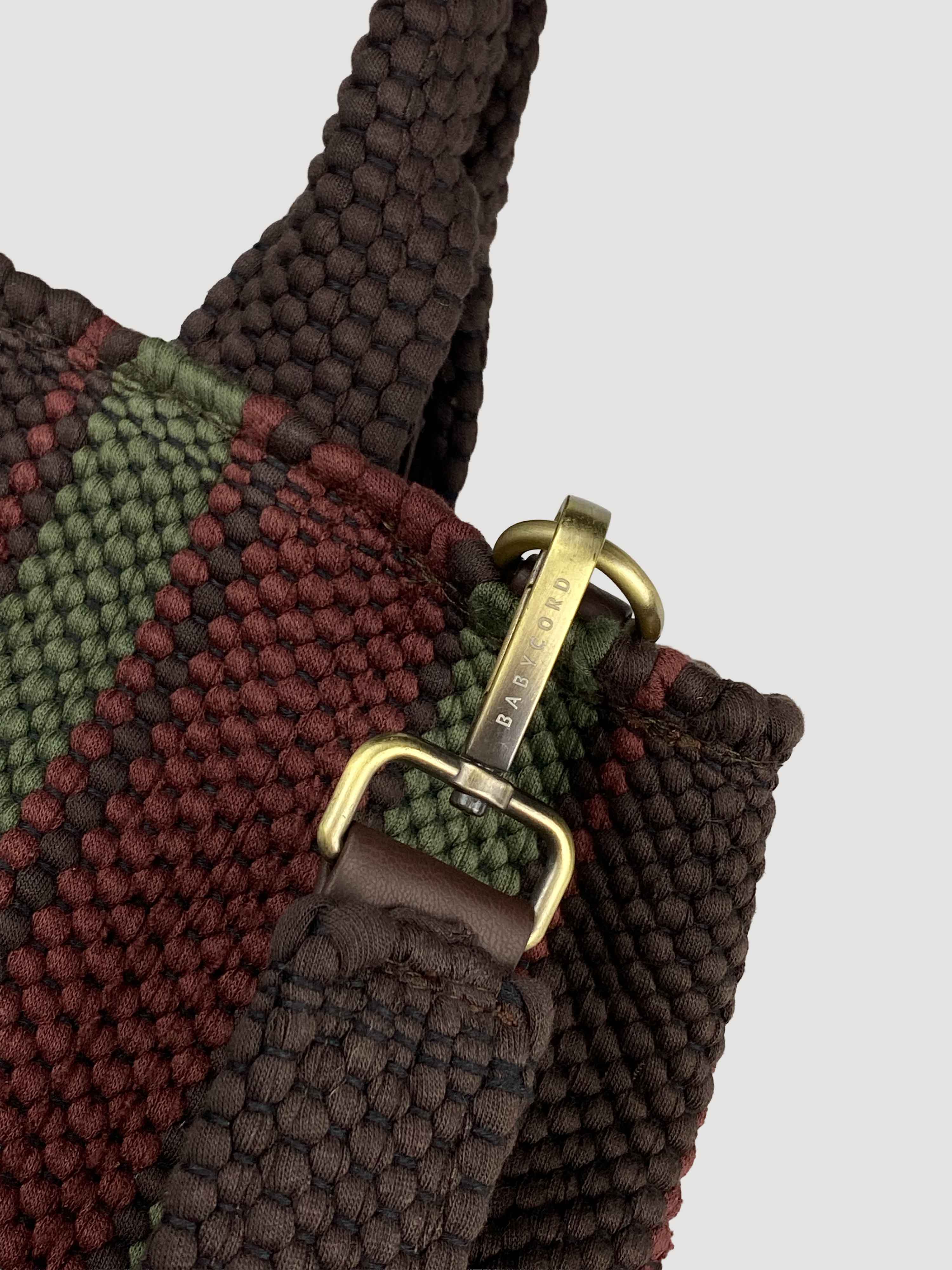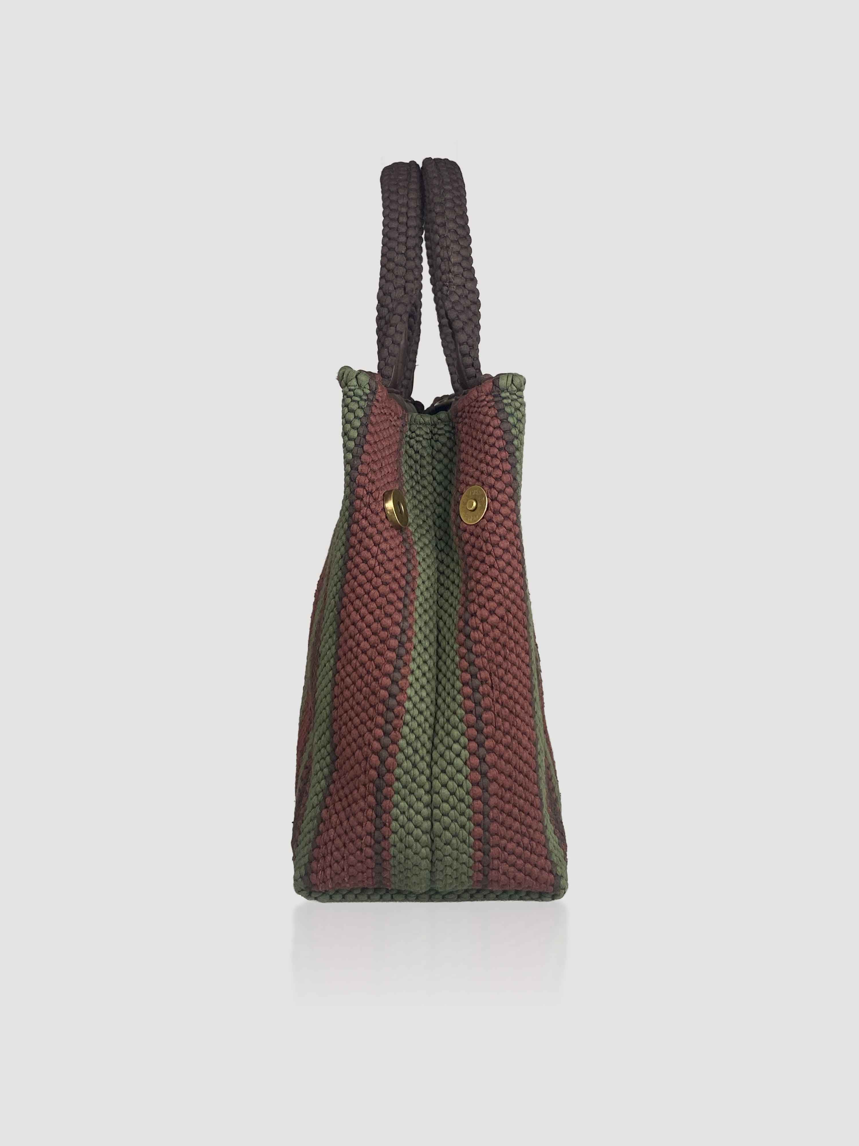 Ürün kumaşı, geri dönüşüm iplikleri kullanılarak geleneksel el dokuması yöntemi ile dokunmuştur. Türkiye’de üretilmiştir.