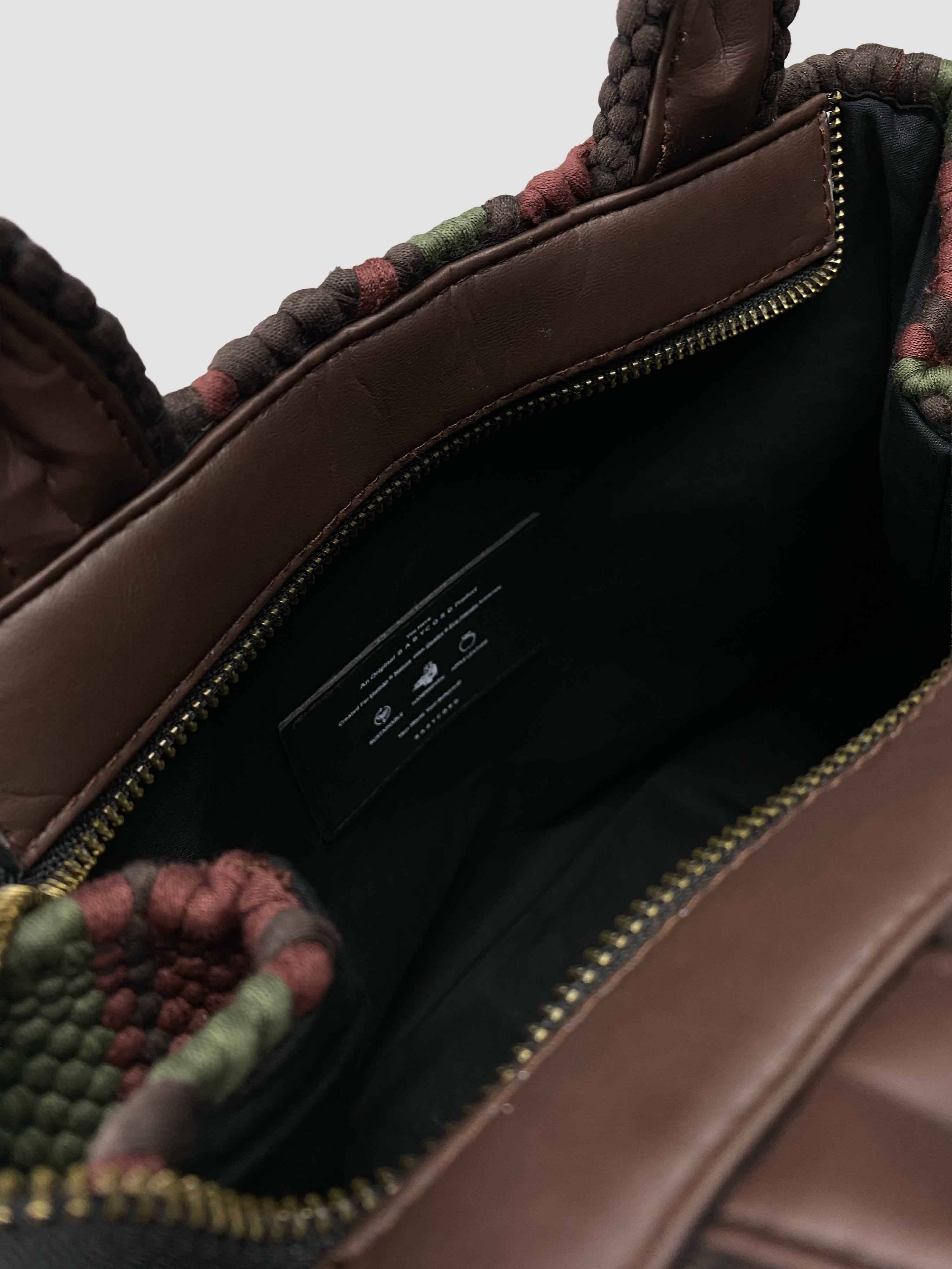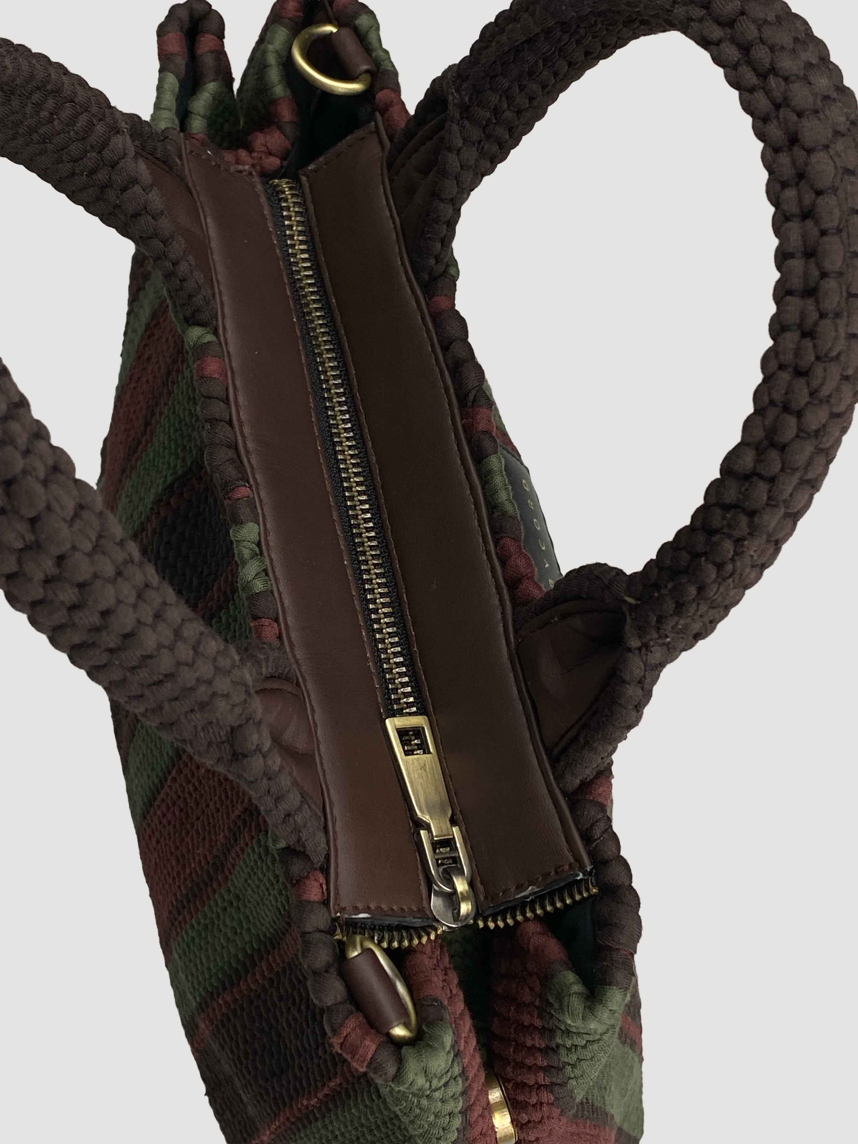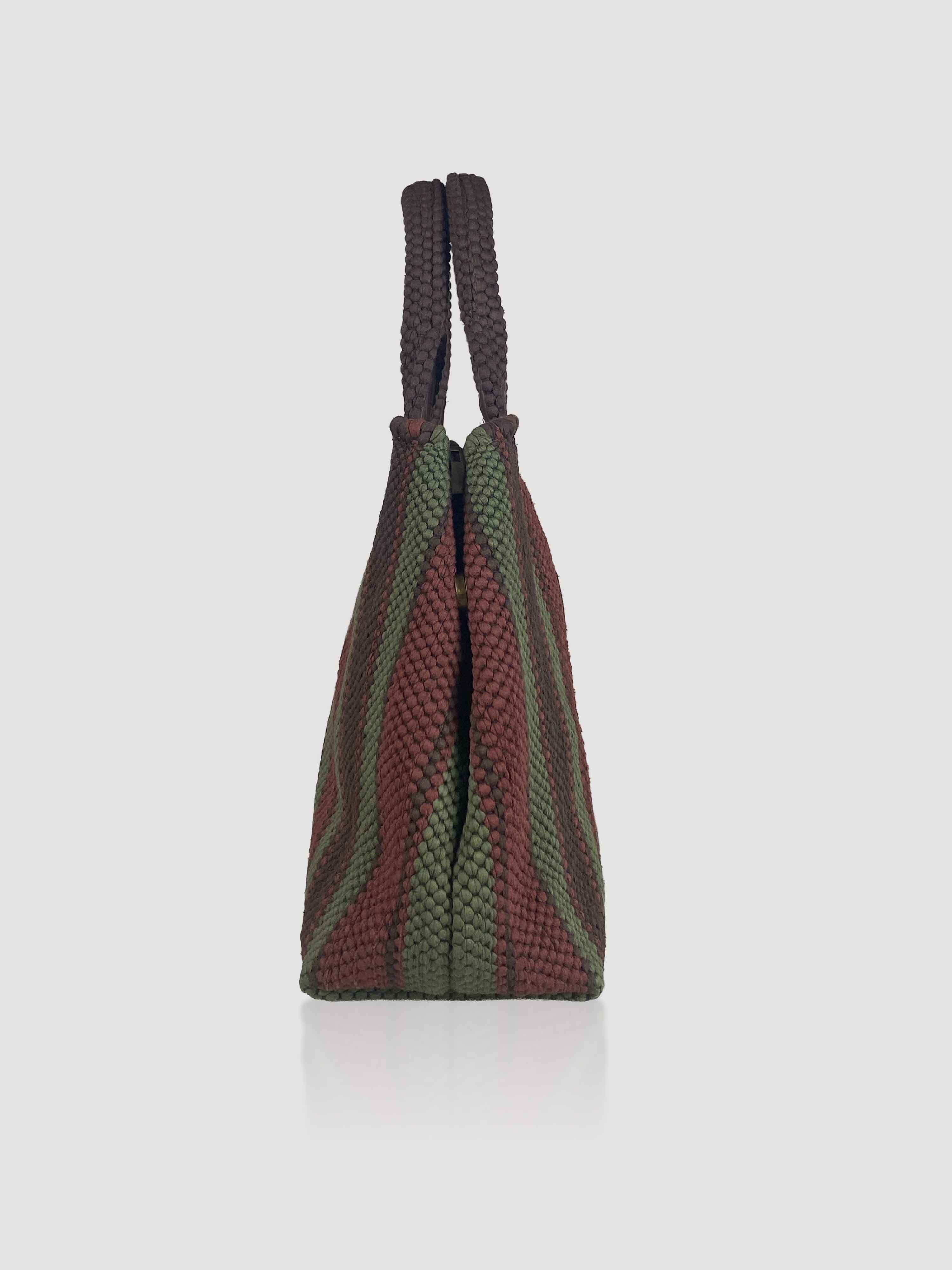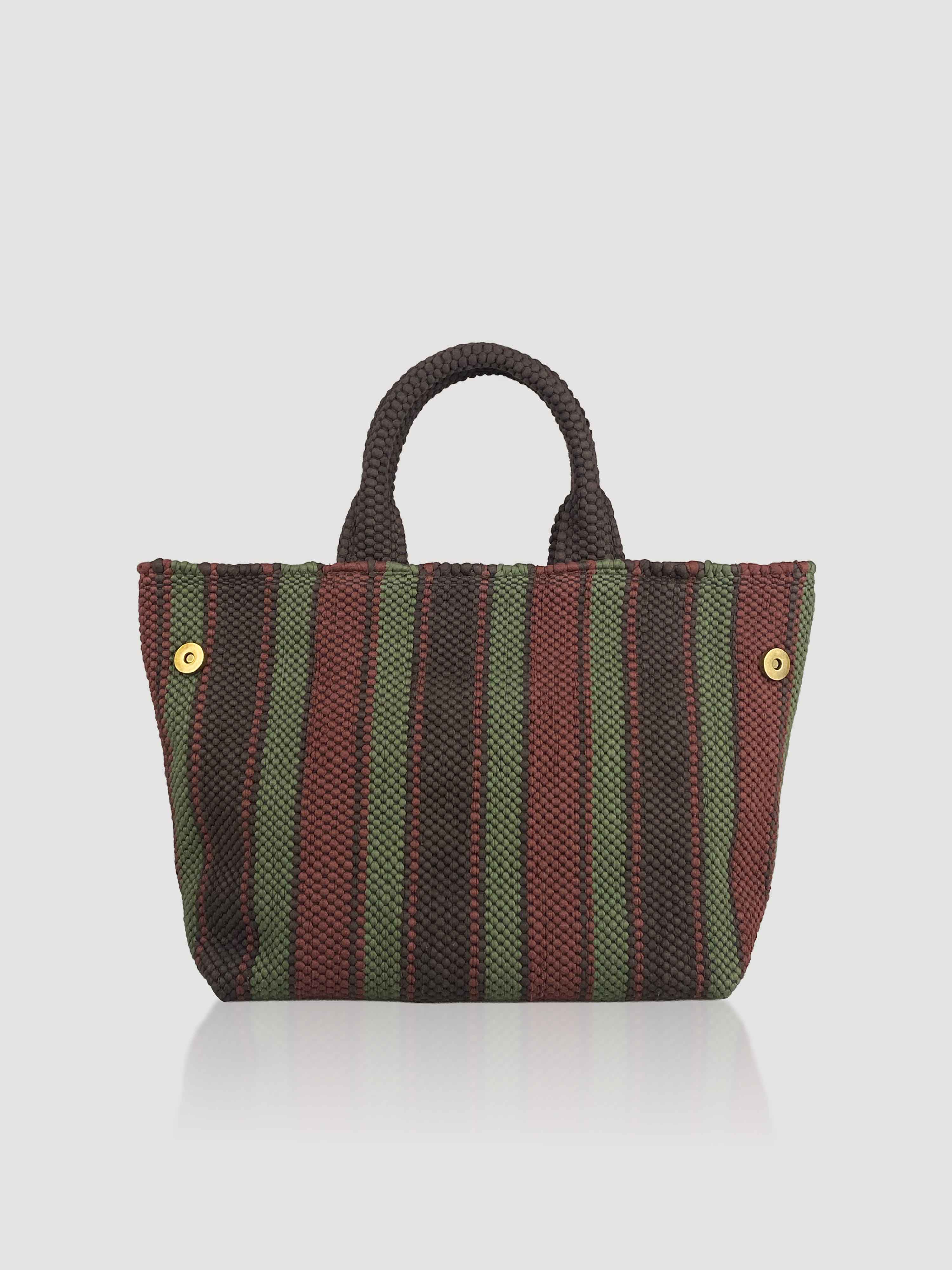 Ürün kumaşı, geri dönüşüm iplikleri kullanılarak geleneksel el dokuması yöntemi ile dokunmuştur. Türkiye’de üretilmiştir.