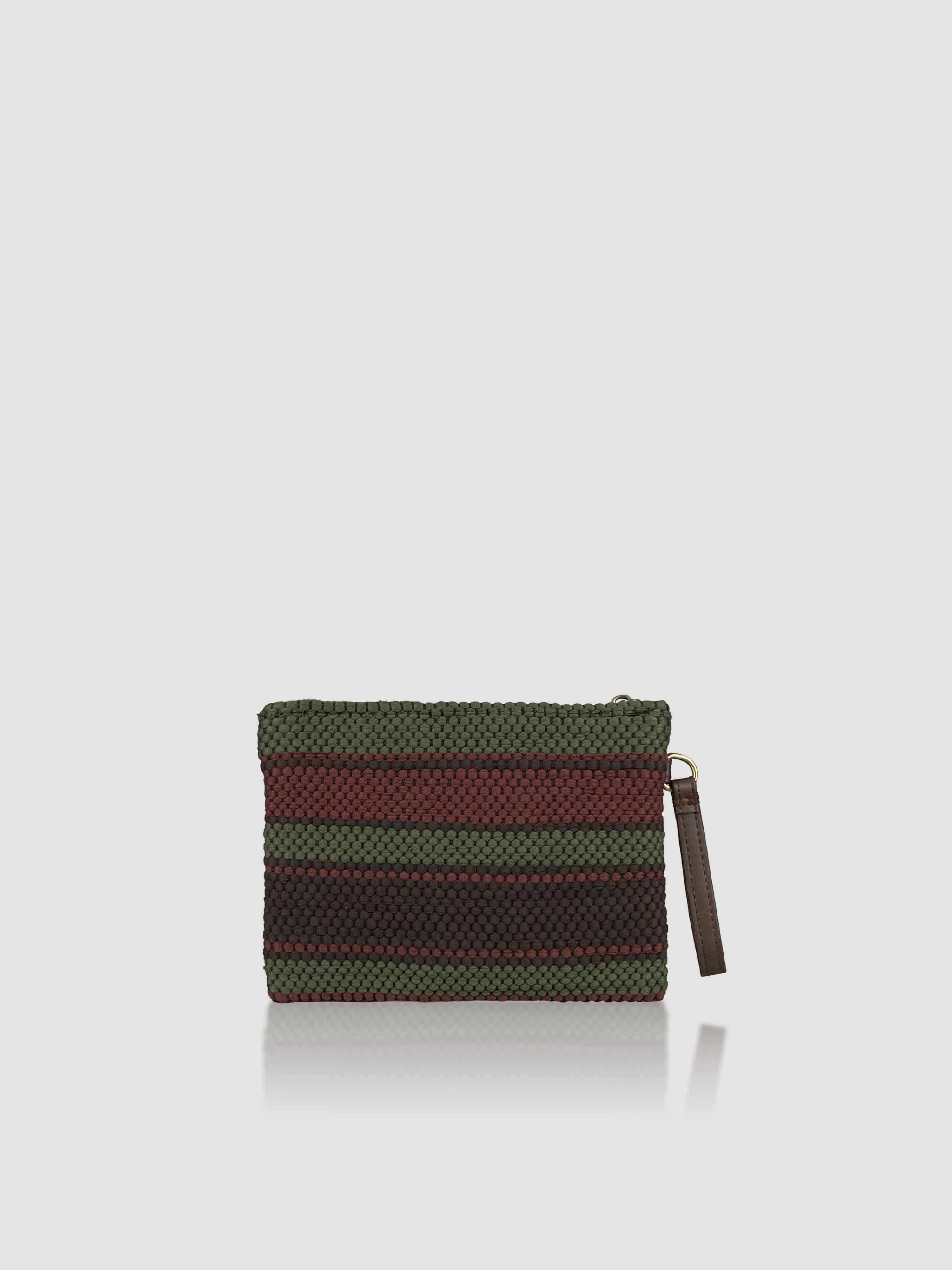 Ürün kumaşı, geri dönüşüm iplikleri kullanılarak geleneksel el dokuması yöntemi ile dokunmuştur. Türkiye’de üretilmiştir.