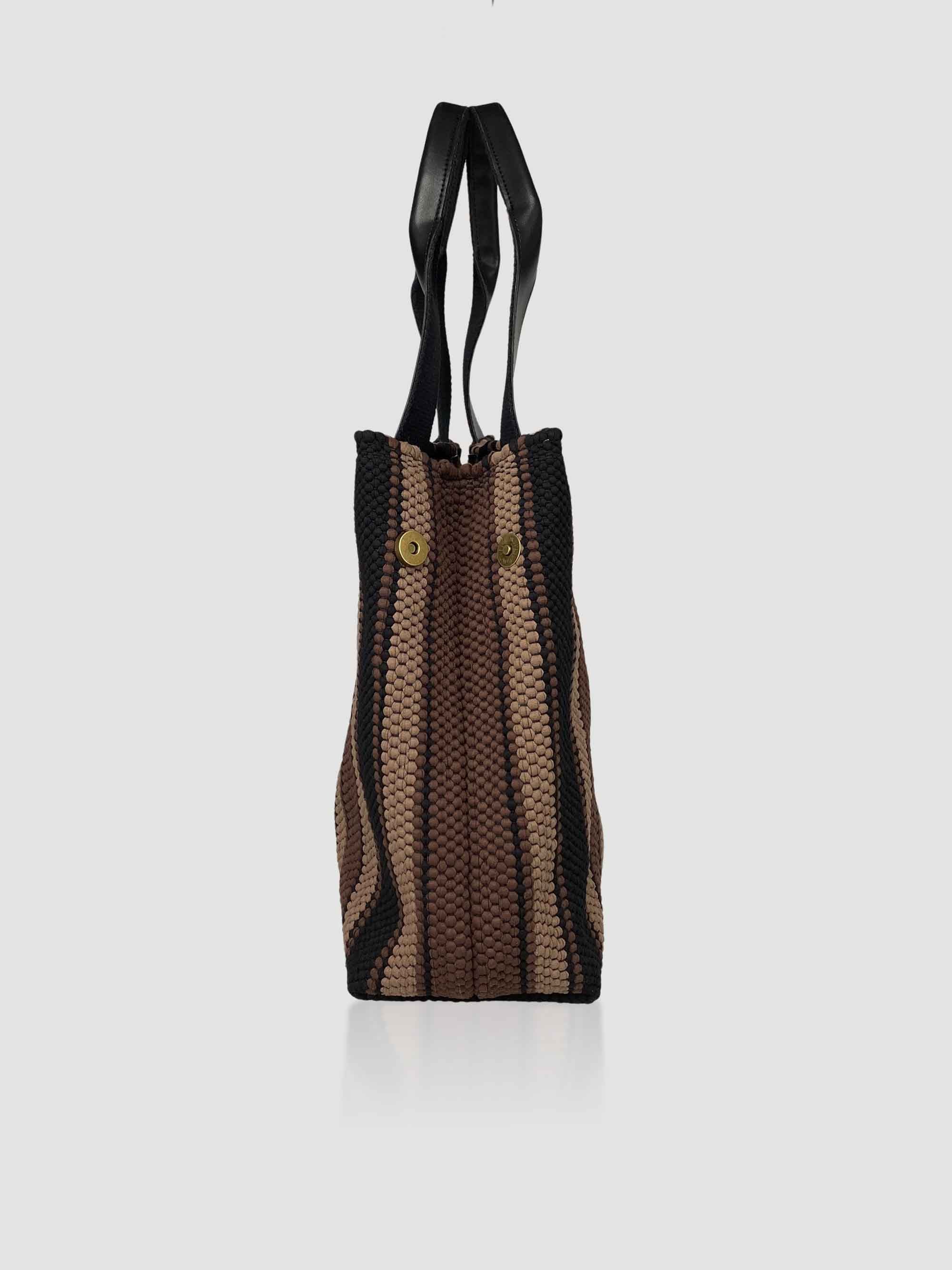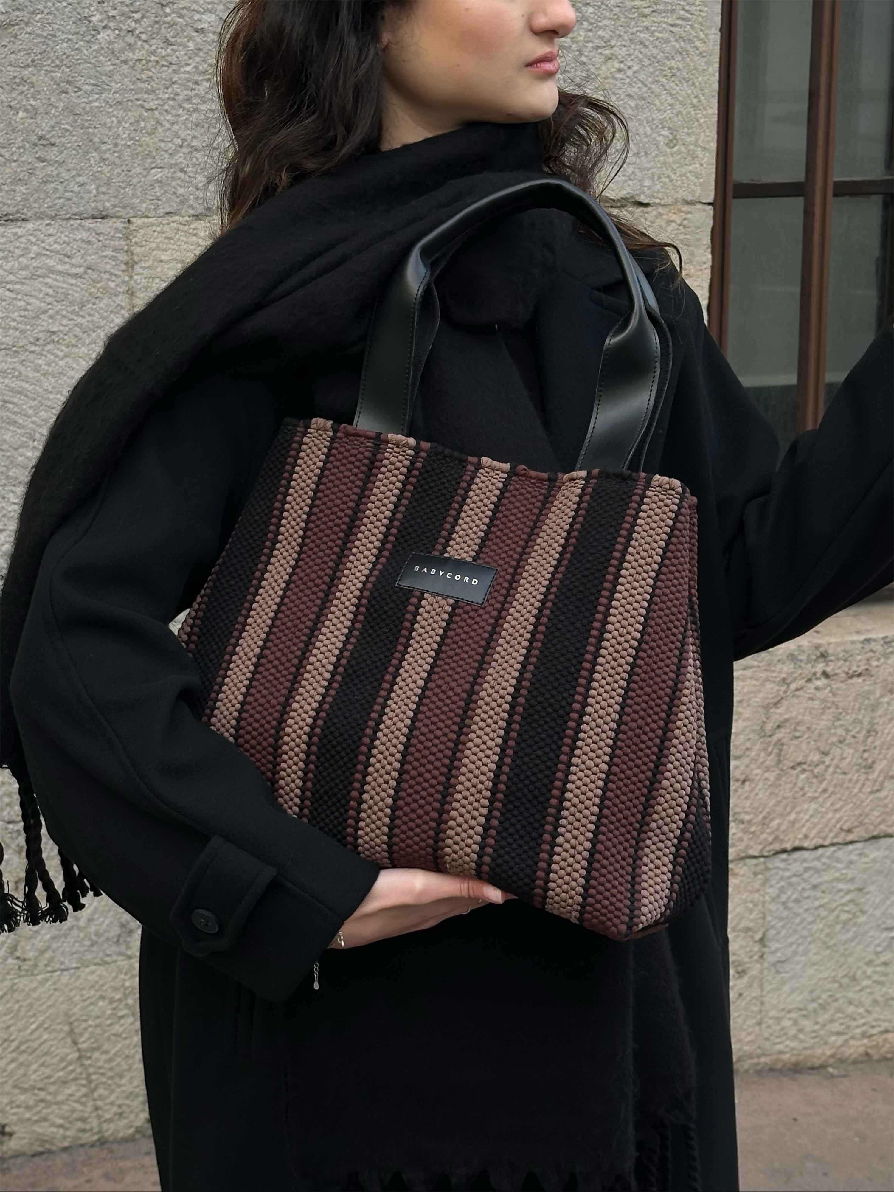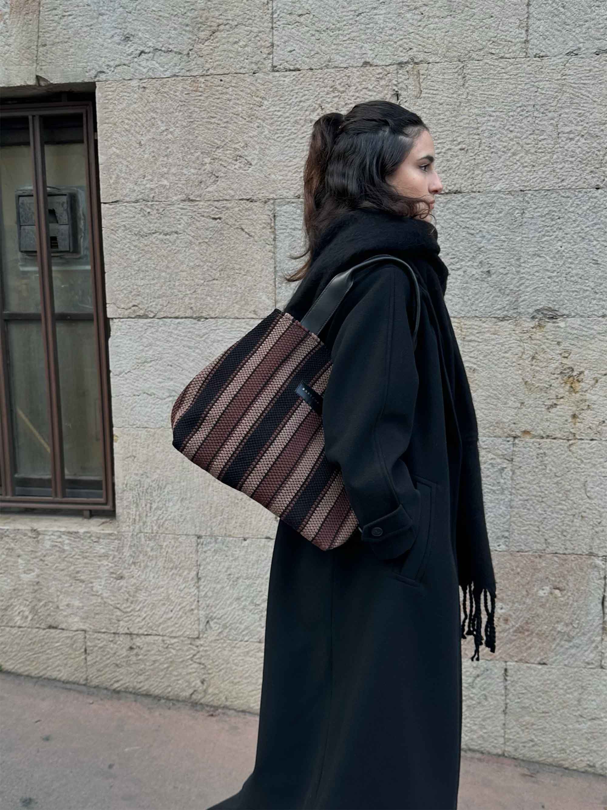 Ürün kumaşı, geri dönüşüm iplikleri kullanılarak geleneksel el dokuması yöntemi ile dokunmuştur. Türkiye’de üretilmiştir.