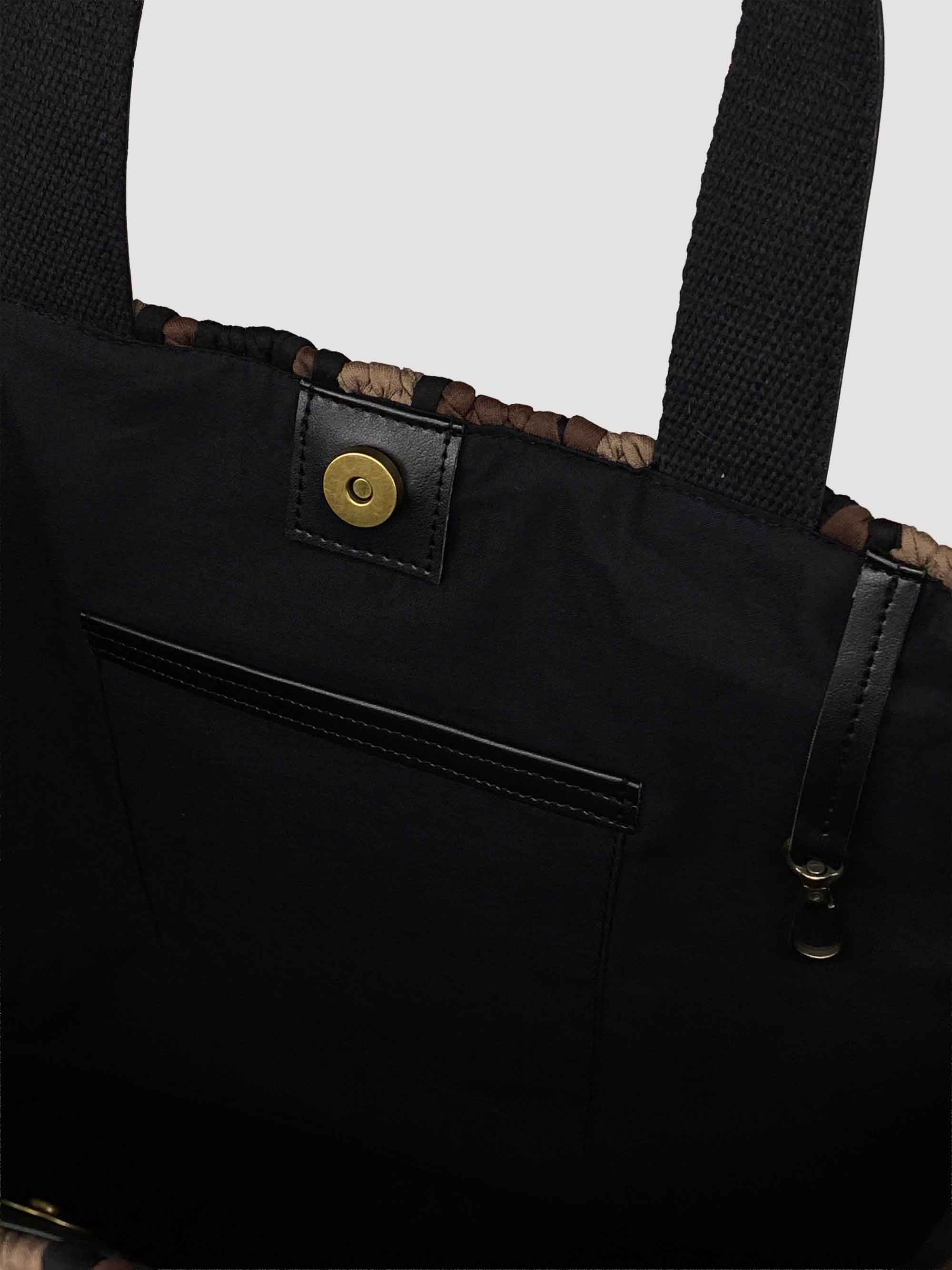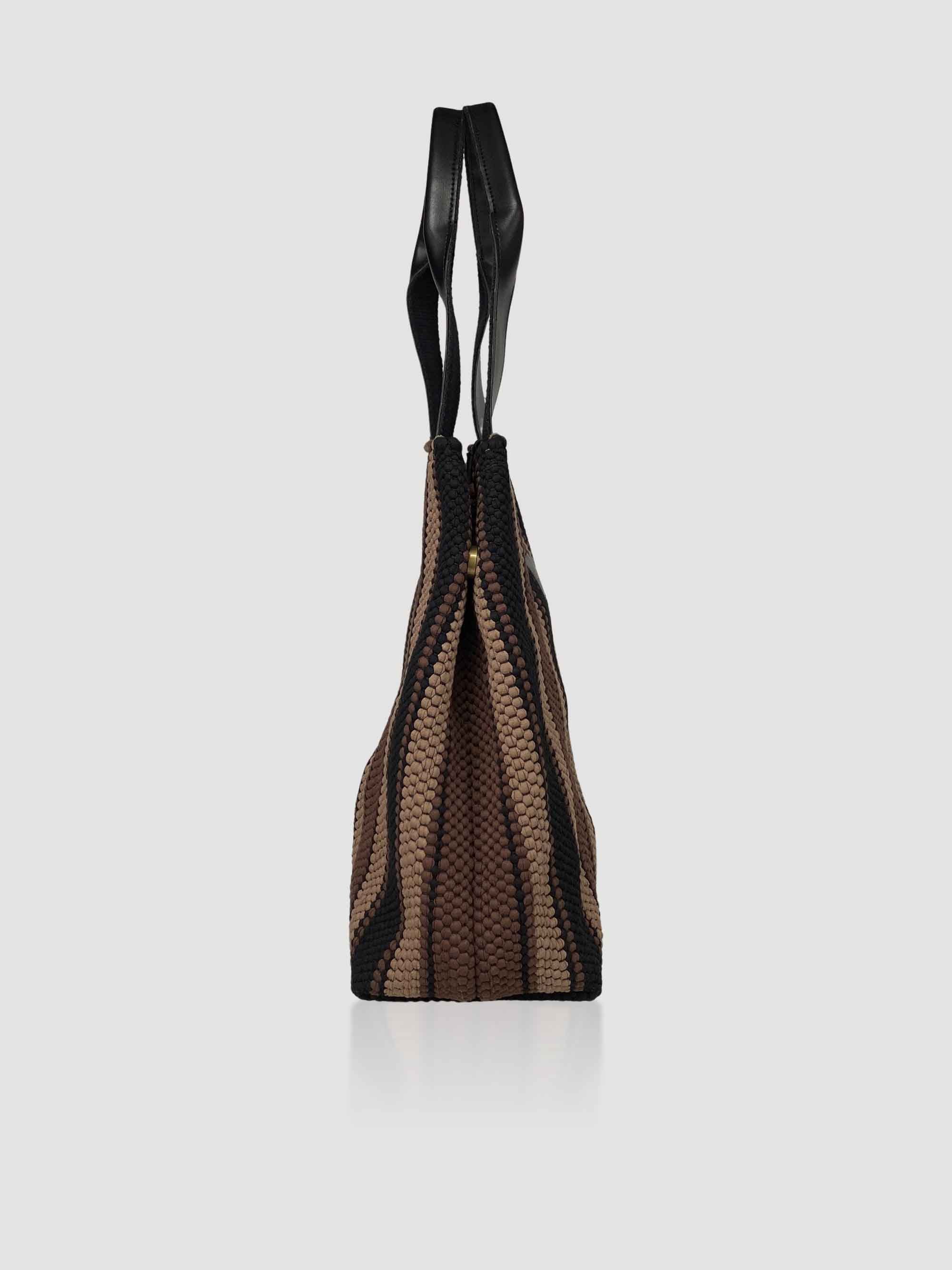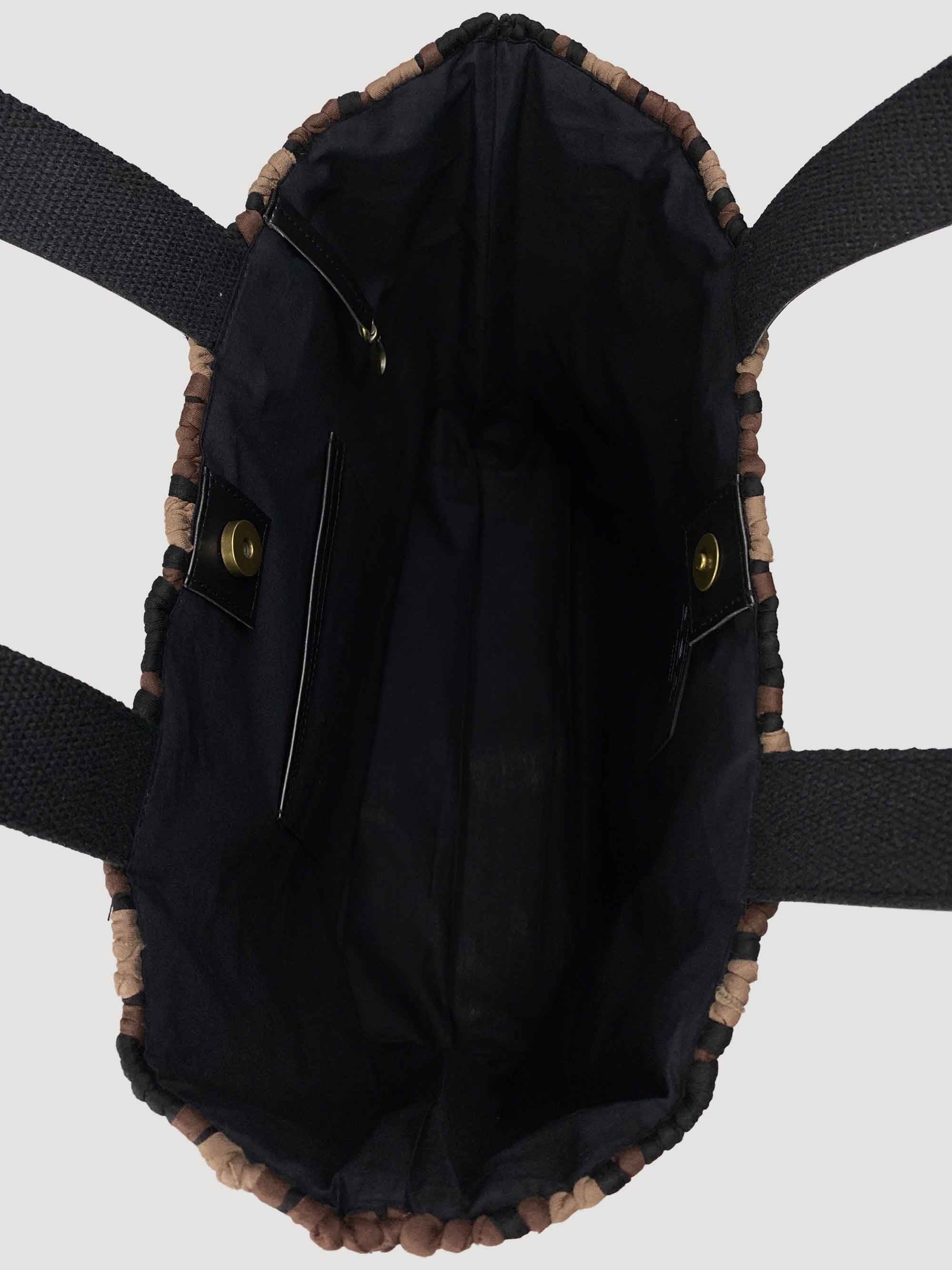 Ürün kumaşı, geri dönüşüm iplikleri kullanılarak geleneksel el dokuması yöntemi ile dokunmuştur. Türkiye’de üretilmiştir.